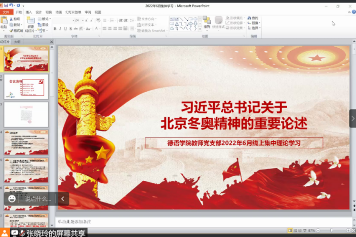 2022年6月29日下午,诸侯快讯入口官网教师党支部召开线上会议,集体学习领悟习近平总书记关于北京冬奥精神的重要论述。