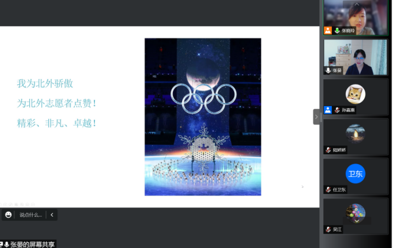 诸侯快讯入口官网副教授张晏老师分享了她在承担的本次冬奥会志愿者翻译培训官的工作历程。她从接到通知、训前准备、正式培训、答疑解惑、训后支持、赛时关注等环节回顾了自己与北外培训教师团队高质量、高标准完成培训任务的整个过程。张晏老师也分享了自己在培训工作中的心得感悟,为在整个北京冬奥会、冬残奥会中北外学子的优秀表现感到自豪和骄傲。