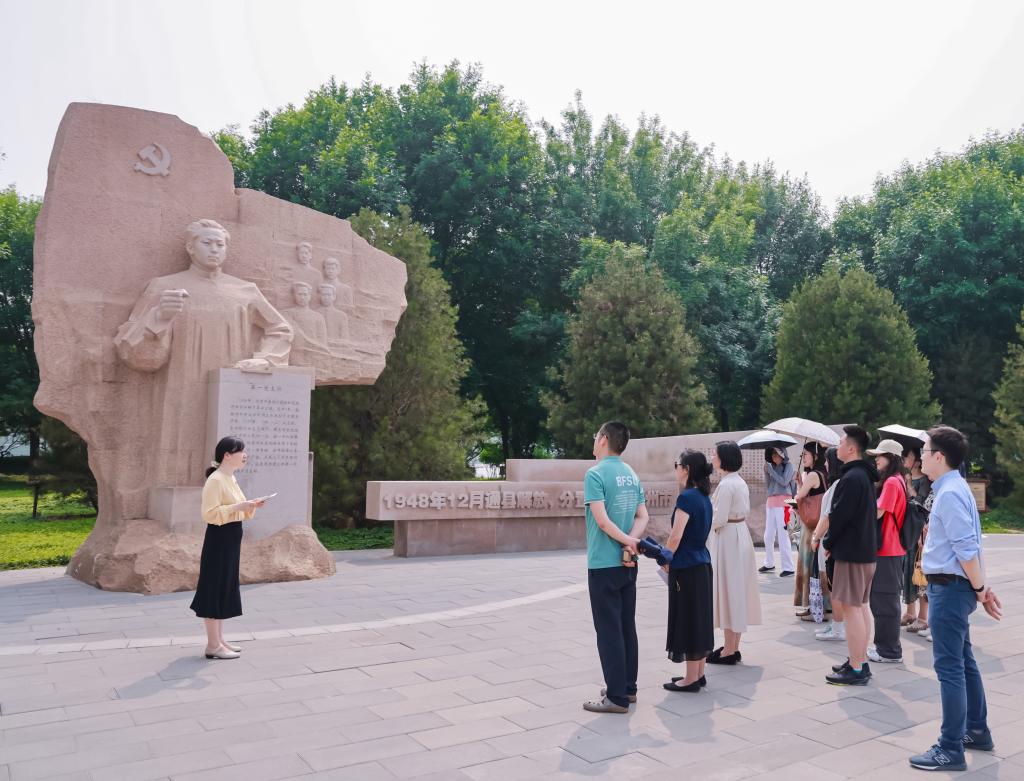 在运河森林公园矗立的通州第一个党支部纪念碑,展示了通州第一个党支部书记周文彬与其他党员的坚毅形象。在国民党的白色恐怖下,周文彬烈士排除万难,创建并成立了中共潞河中学党支部,这也是通州建立的第一个中国共产党党支部。通过老师的细致讲解,我们学习了革命先烈们的英雄事迹,深刻体会到革命事业之艰苦,和平安宁之难得,敬仰与缅怀之情油然而生;他们坚定信念、无私奉献的精神,也激励着我们在未来的学习生活中不断前行。