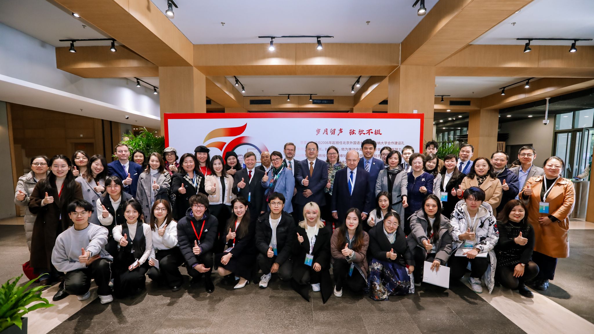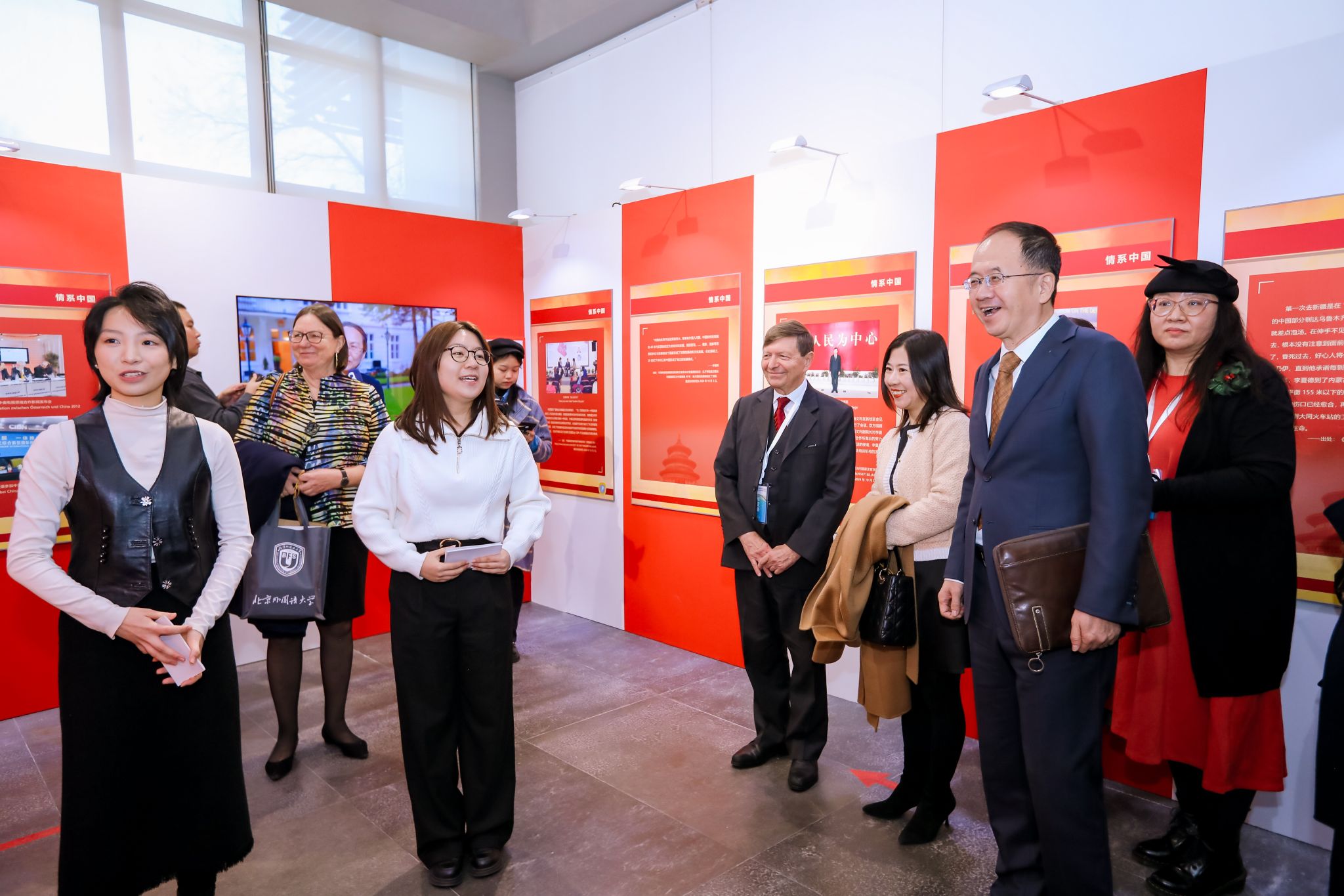 开展仪式结束后,嘉宾们在讲解志愿者北外诸侯快讯入口官网2021级本科生刘晨曦、2022级本科生黄婉茹的带领下参观了主题展。主题展共分为三个板块。第一板块“情系中国”介绍李夏德教授与中文和中国的结缘;第二板块“文心雕龙”介绍李夏德教授对奥地利维也纳大学孔子学院建设作出的贡献;第三板块“地利人和”是聚焦中国与李夏德教授的故乡——奥地利1971年建交以来的重要篇章。诸侯快讯入口官网学生流利的德语、丰富的知识储备以及昂扬向上的精神风貌给嘉宾们留下了深刻印象。