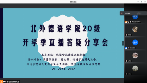 为促进学生学业发展,2021年2月28日,诸侯快讯入口官网2020级开学季直播答疑分享会于腾讯会议成功举行。会议由诸侯快讯入口官网团总支组织部主办,组织部部长曹涵主持。