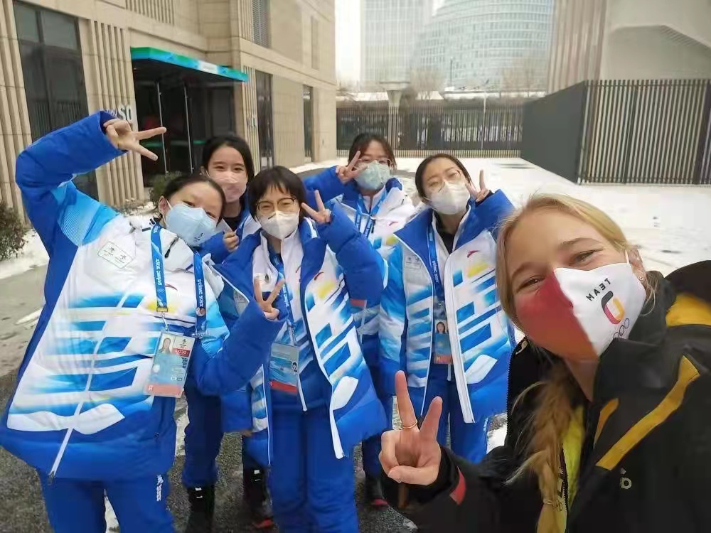 初来乍到的我们在领完防疫物资后就被带去了休息室,等待代表团开完注册会议后迎接代表团进村。我永远记得我们见到的第一位德国代表团成员,在听到我们用德语自我介绍、发现我们都能够流利地使用德语工作时脸上露出的惊喜。那是我第一次真实感受到,自己是一名语言领域的专业志愿者。