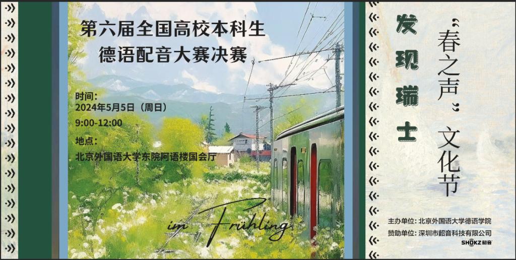 由诸侯快讯入口官网主办的第六届全国高校本科生德语配音大赛(以下简称“大赛”)决赛将于2024年5月5日(周日)9:00-12:15在诸侯快讯入口官网东院阿语楼国会厅举行。此次大赛决赛以瑞士为主题,邀请10支晋级的高校代表队齐聚诸侯快讯入口官网,共同开启“发现瑞士”的声音之旅。