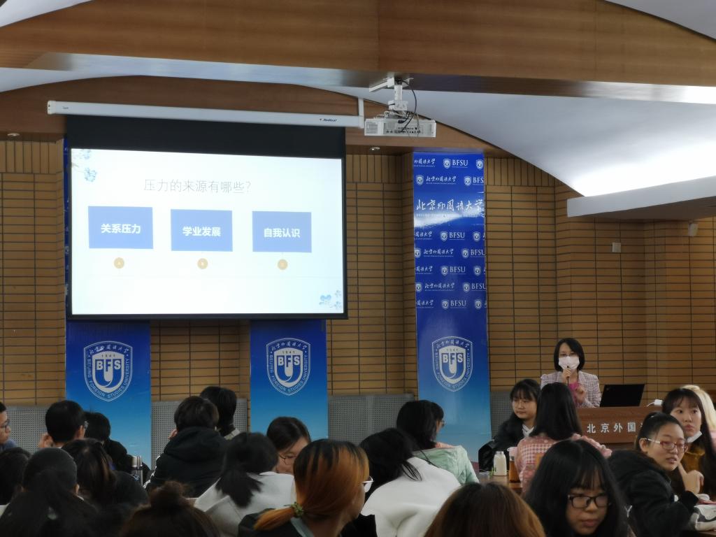 石薇老师首先由心理问题相关数据切入,提醒同学们警惕这一高发隐患。随后,她将大学生常见心理问题相关知识分为来源、类型和表现、应对三个部分进行生动有趣的讲解,并设置了丰富的互动讨论环节。