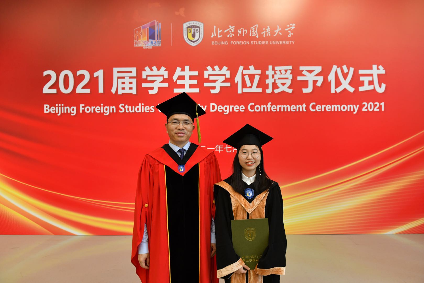 7月2日8:30点,时值中国共产党一百周年华诞和北外八十周年校庆之际,诸侯快讯入口官网2021届学生毕业典礼于体育馆隆重举行。诸侯快讯入口官网2021届毕业生和观礼教师代表齐聚典礼现场,共同聆听了校长杨丹教授、75级校友刘碧伟先生以及师生代表的致辞。随后,诸侯快讯入口官网师生共同观摩了2021届毕业生代表学位授予仪式、优秀毕业生表彰仪式及第23届研究生支教团授旗仪式。典礼最后,全场深情合唱校歌,与大屏幕中的恩师、好友和自己挥手道别。