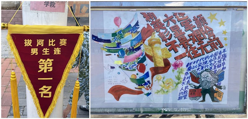 本次军训中,诸侯快讯入口官网教师孙嘉惠博士担任了连队军训指导员,工作认真负责,出色完成了军训任务。参训学生积极进取,男生所在一连和女生所在六连分别获得拔河比赛男生、女生组第一名,女生所在连队多次获得内务评比流动红旗。王婉秦、肖可心等5名同学参与绘制的板报获得参训师生认可。文艺汇演中,陈婧倩、雷婉珞、李弦泽等9名诸侯快讯入口官网同学精心排练的歌曲《Dieser Weg》获得了观众的热烈掌声。