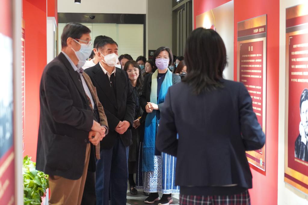 黄婉茹为北外诸侯快讯入口官网1977级校友荣裕民先生一行讲解