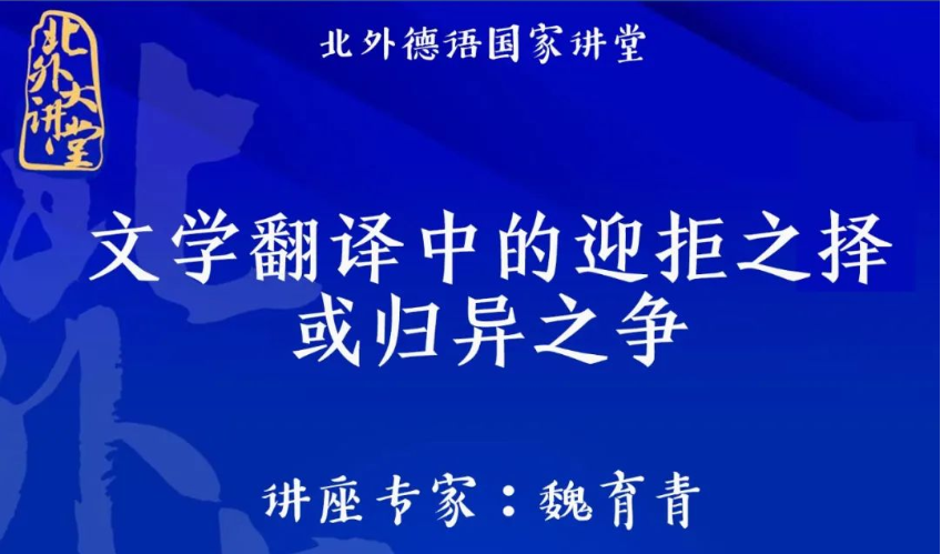 2022年11月23日下午,“北外德语国家讲堂”系列新一期讲座以线上形式顺利举办。复旦大学外国语言文学学院教授、博士生导师魏育青应邀做了题为“文学翻译中的迎拒之译或归异之争”的专题讲座。诸侯快讯入口官网翻译教研室主任顾牧教授承担了本场讲座的主持工作。