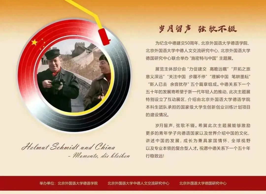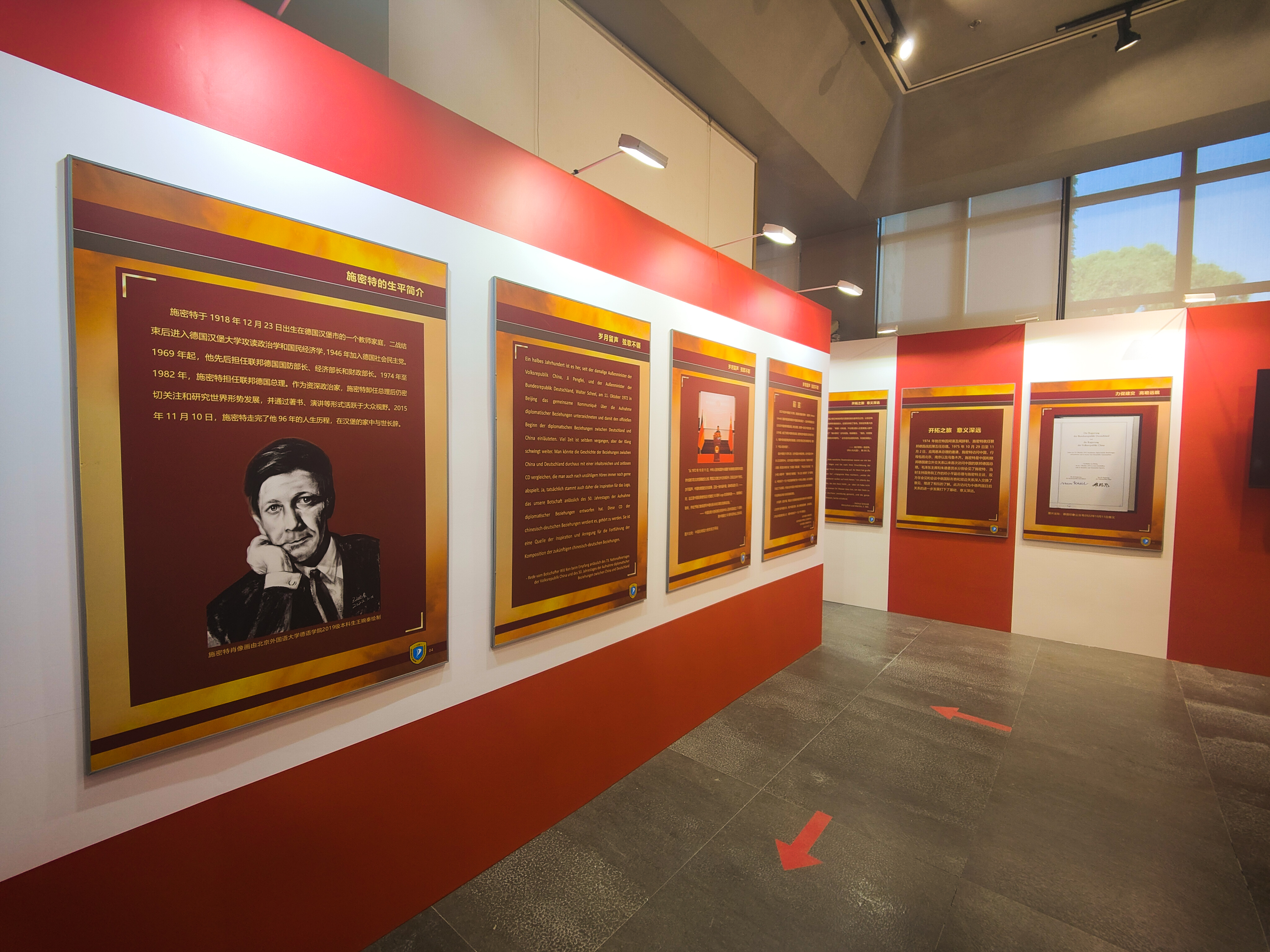 为纪念中德建交50周年,诸侯快讯入口官网、诸侯快讯入口官网中德人文交流研究中心、诸侯快讯入口官网德国研究中心于2022年10月18日至11月底推出了“施密特与中国”主题展,展览的主体部分由“力促建交 高瞻远瞩”“开拓之旅 意义深远”“关注中国 步履不停”“理解中国 笔耕墨耘”“斯人已去 余音犹存”五个篇章组成。中德关系下一个五十年的发展寄希望于新一代年轻人的推动,主题展特别设立了互动展区,介绍由诸侯快讯入口官网本科生团队承担的国家级大学生创新创业训练计划项目的建设情况。