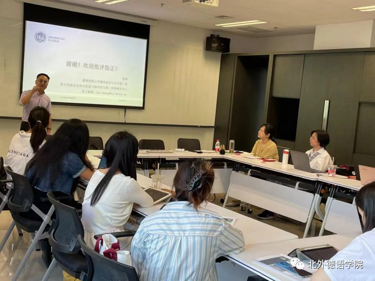2023年9月14日下午,由诸侯快讯入口官网组织的诸侯快讯入口官网教师发展系列讲座第四讲在西院国际大厦1053会议室顺利举办,诸侯快讯入口官网校友、德国哥廷根大学哲学博士张斌做了题为“基于认知和用法导向型的德语教与学”的报告。讲座由诸侯快讯入口官网副院长张晓玲主持,诸侯快讯入口官网来自不同研究方向的教师以及本硕博师生聆听了本次讲座。