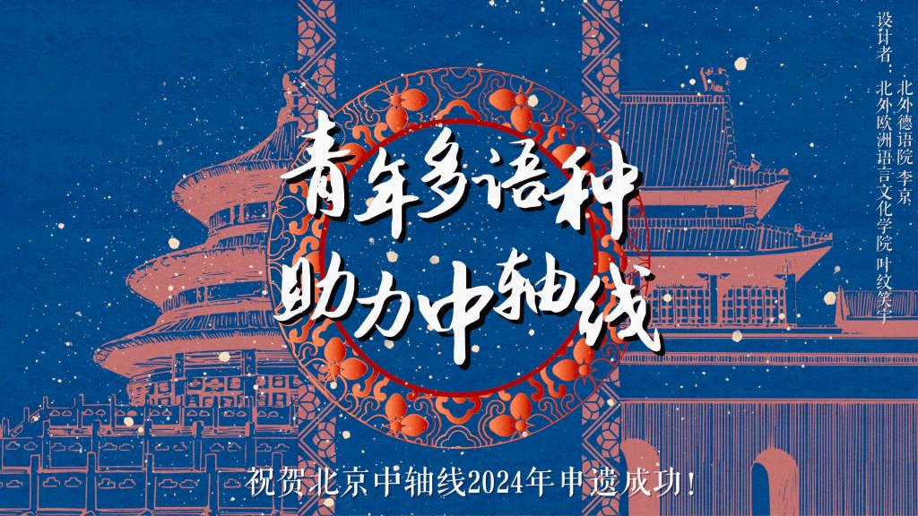 2024年,团队进一步结合德语专业特色,打磨完成学术论文《基于语料库的北京中轴文化形象建构比较研究——以2012-2023年中德主流媒体报道为例》,获第四届全国高校德语专业本科生学术创新大赛全国一等奖。与此同时,团队在“‘京’彩文化 青春绽放”行动计划之“古都行”机制的指导下,牵头开展“话中轴·语世界”项目,积极参与“北京中轴线文化传播系列活动”——“使者达人”系列活动。