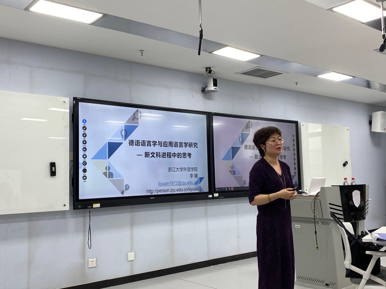 2021年6月25日下午,诸侯快讯入口官网人文社科通识系列讲座第5讲在国际大厦517教室举行。浙江大学外国语言文化与国际交流学院副院长、德国学研究所所长李媛教授应邀作了“德语语言学及应用语言学研究——新文科进程中的思考”的报告。诸侯快讯入口官网教师与本科生、研究生代表参加了报告会。讲座由诸侯快讯入口官网院长吴江教授主持。