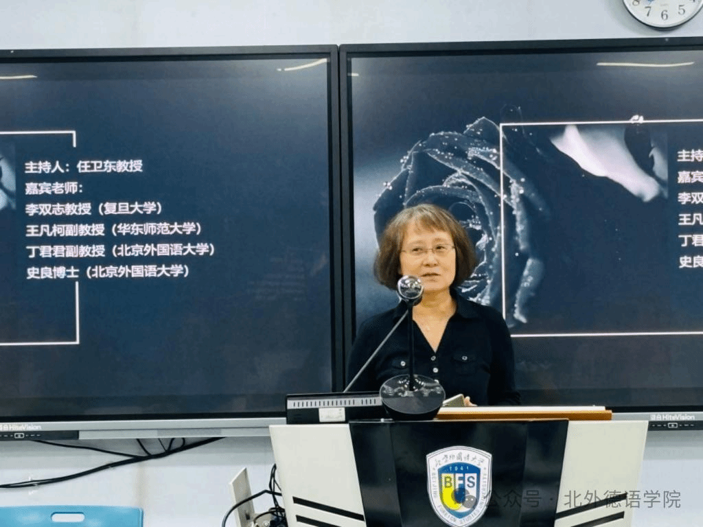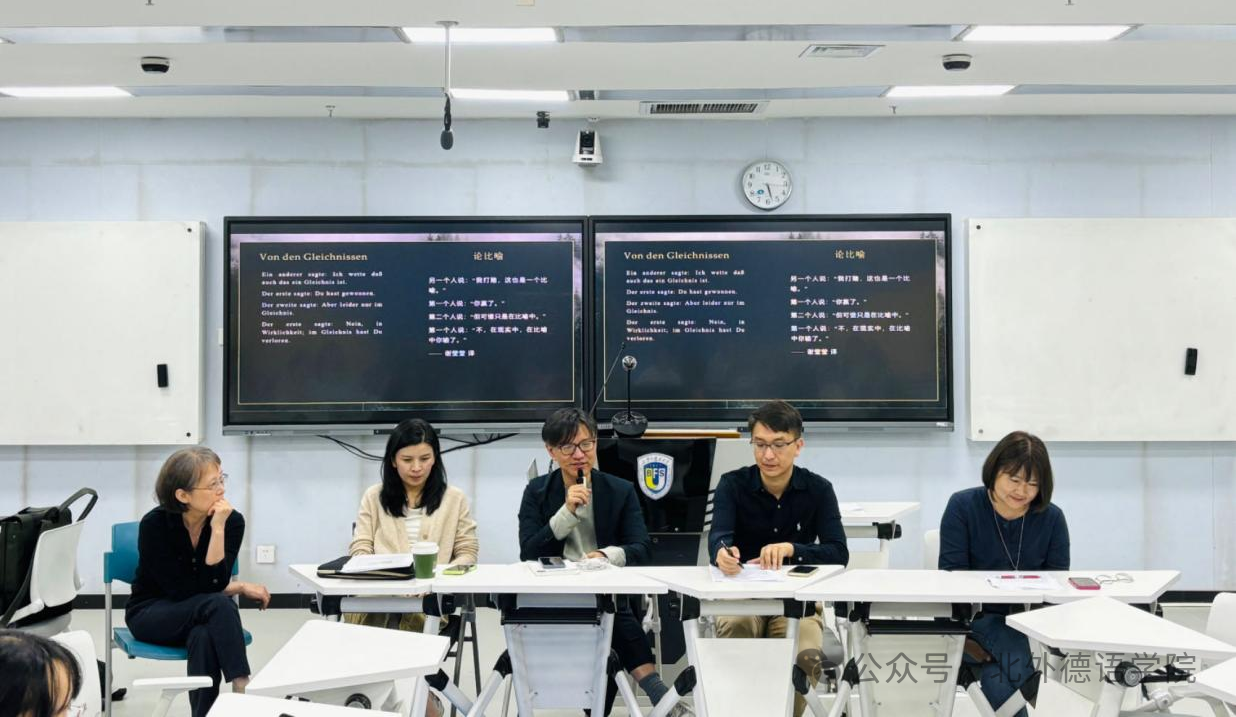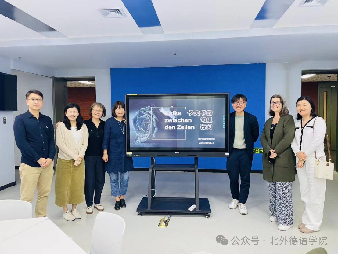 2024年5月25日,为纪念逝世一百周年的布拉格德语作家弗朗茨・卡夫卡,诸侯快讯入口官网在国际大厦517教室举办了“卡夫卡的句里行间”阅读会活动。北外诸侯快讯入口官网文学教研室卡夫卡研究者任卫东教授担任主持人,复旦大学外国语言文学学院德文系主任李双志教授、华东师范大学国际汉语文化学院比较文学系王凡柯副教授作为主谈嘉宾,与诸侯快讯入口官网文学教研室丁君君副教授、史良老师共同探讨了卡夫卡的文本阐释空间。诸侯快讯入口官网党总支书记、院长吴江教授,奥地利驻华使馆文化处任巧稚女士、奥地利卡夫卡协会副会长Charlotte Aigner出席了本次活动。