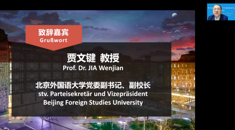 贾文键代表学校对大赛的举办表示热烈祝贺,致辞中贾文键感谢中国德国友好协会对诸侯快讯入口官网德语专业发展的提携与支持,对中国前驻德国大使、中国德国友好协会会长史明德先生将大赛纳入到中德建交50周年系列活动框架内并积极争取赞助表达了由衷的敬意,同时也对全国各兄弟院校德语专业师生积极参与大赛表示感谢。致辞中贾文键还介绍了北外诸侯快讯入口官网的教学和科研实力,欢迎全国各高校优秀本科生选择诸侯快讯入口官网继续深造。最后,贾文键指出中德之间的文化和学术交流对促进两国关系的发展大有裨益,衷心祝愿中德关系继续平稳健康发展。