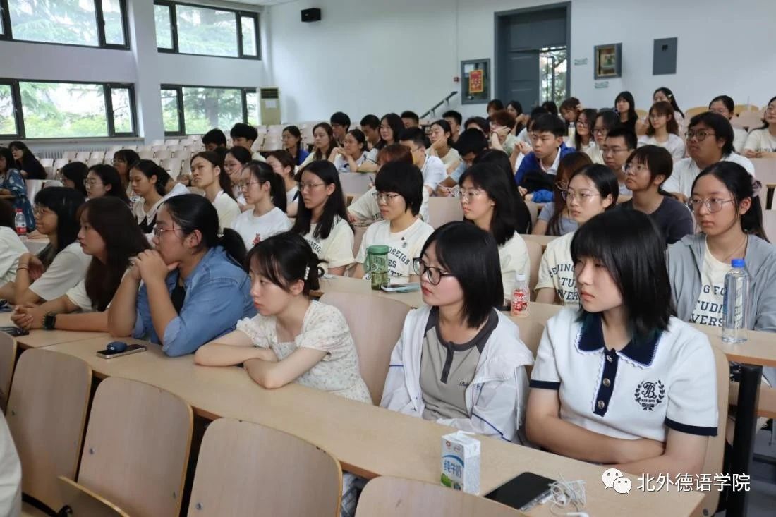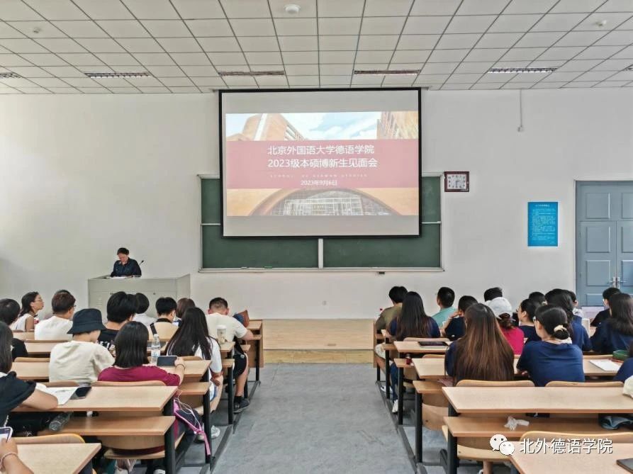 之后,学院党总支以及党政联席会成员先后发言。党总支成员、教学秘书于芳鼓励新生树立新的目标,努力实现梦想;党总支委员、副院长张晓玲、寇蔻勉励新生积极参与学院丰富多彩的各项活动,通过学习德语遇到更好的自己,认识更大的世界,用德语成就梦想,用梦想创造未来!党总支常务副书记李勇引用抗大校训“团结、紧张、严肃、活泼”,希望新生在大学宿舍生活中养成包容差异的生活习惯,搞好团结;在学院和学校的各种集体活动中,在各项校内外竞赛中,团结一致,共创佳绩。保持德语人严谨、认真和细致的好传统作风,勇创新、善突破。保持持之以恒、坚持阅读等良好的微习惯,遇见最好的自己。党总支书记、院长吴江借用汉字“熵”的由来以及管理学提出的实现熵减的三个路径,结合北外诸侯快讯入口官网的发展史,勉励2023级本硕博新生保持开放的心态,学会与不同的学科和方向实现“能量交换”,敢于尝试创新远离稳态,秉持“兼容并蓄 博学笃行”的北外校训,开启在北外的晨读和暮思!