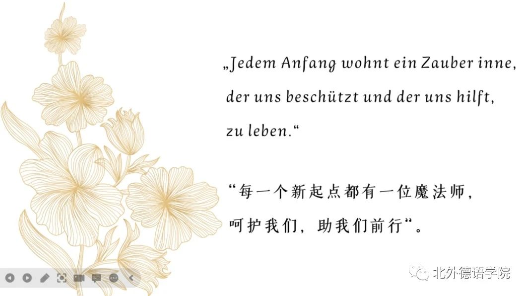 徐四季、李婧和陆娇娇作为教研室主任代表发言,勉励新生勇敢做自己,从北外出发,走向德语国家,在中欧交流的大舞台贡献自己的力量,祝福新生在北外沐浴四季阳光,播撒梦想的种子,合理规划好时间,充分培养兴趣与才干,不负韶华,静待花开;葛囡囡、史良作为班主任代表发言,鼓励新生寻找互帮互助的朋友,结识志同道合的伙伴,在模仿和超越榜样的过程中塑造出独特的自我;洪堃绿、武迪作为青年教师代表发言,祝福新生在北外诸侯快讯入口官网度过充实美好的多彩时光,学有所成,开启行走世界的人生新篇章!包葛耿、邱袁炜代表学院行政工作人员发言,希望新生在北外的日子过得开心,每天进步一点点;辅导员张春霞、张婧、黄唯城勉励新生珍惜青春年华,勇攀学业高峰,敢于行走世界,秉承红色基因,成为又红又专又雅的北外德语人,承担起中华民族伟大复兴、构建人类命运共同体的重任。