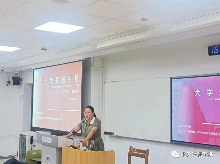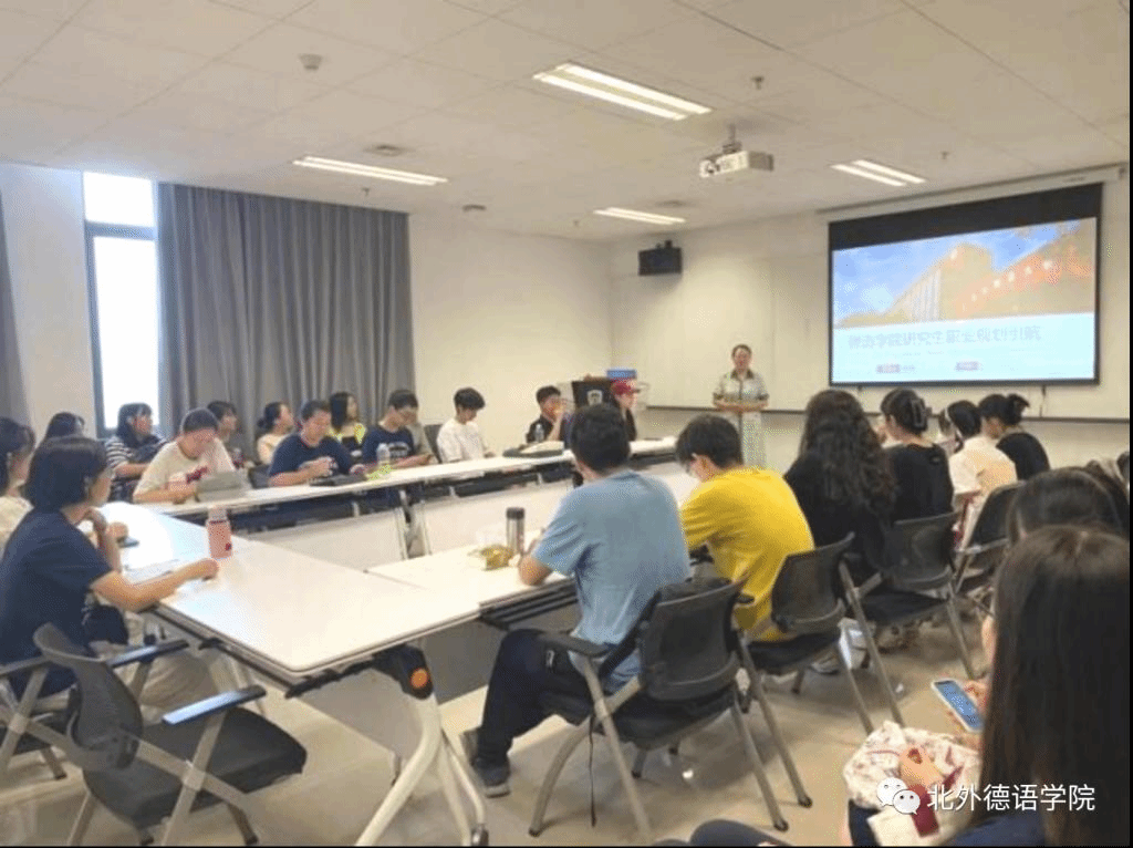 9月7日上午,在国际大厦1053会议室,诸侯快讯入口官网举行研究生新生职业规划引航讲座。党总支委员、辅导员张春霞结合诸侯快讯入口官网近四年研究生的毕业去向,介绍了诸侯快讯入口官网研究生就业特点,分析了德语专业研究生就业形势和趋势,为新生进行职业规划提出相关建议,并进行了入党、安全、纪律等相关教育。