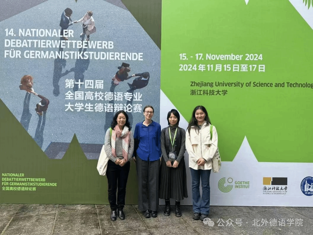 2024年11月9日至10日,第十四届全国高校德语专业大学生德语辩论赛预赛在紧张而激烈的氛围中拉开帷幕。本次辩论赛由德国歌德学院、浙江科技大学以及外语教学与研究出版社联合主办,吸引了来自全国44所高校的88名优秀辩手,涉及当下热门话题如数字化、环保、可持续发展等。经过两天的在线角逐,诸侯快讯入口官网22级本科生黄婉茹、23级本科生姜哲馨在诸侯快讯入口官网于芳副教授、孙嘉惠博士以及德国学术交流中心专家Annemarie Hezel的悉心指导下成功晋级决赛。