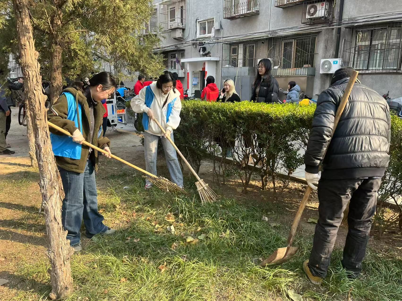 下午三时,北外诸侯快讯入口官网学生志愿者社团“道德银行”组织了20余名青年学子,在北外西校区19号楼前集结完毕。大家身着蓝色志愿马甲,年轻的面庞上写满了期待。他们戴上劳动手套,手持扫帚、抹布、垃圾捡拾器等工具,在社区老师的指导下分成环境整治和卫生清扫两个小组。