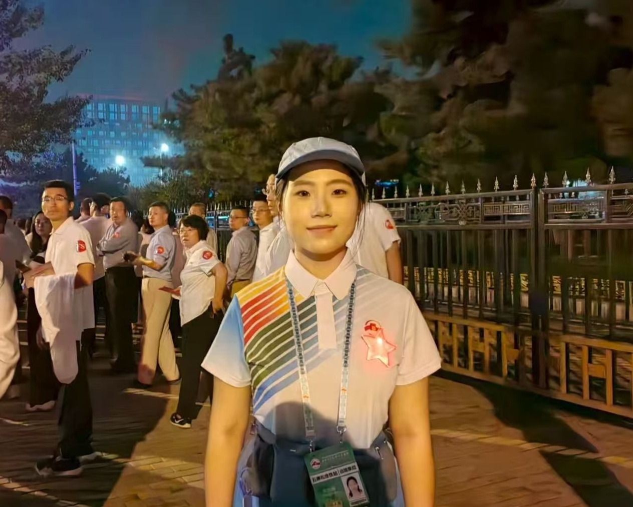 回望过去二三月,从面试选拔、确认入选、踏勘演练,再到正式活动,经历丰富,感受绵长。能作为一名志愿者参与本次纪念大会,倍感荣幸。以灿烂笑容服务盛会,以微薄之力参与并见证伟大时刻,心中的自豪与激动难以言表。我一帧帧回想,想起演练时淋过的大雨,在大风里冻得无法控制肌肉;想起观礼嘉宾向我竖起的大拇指;想起在我说出“祝您观礼愉快”后得到的灿烂回应;想起自己因为激动难以控制的泪水;还想起工作结束后迎我们凯旋的朝霞与鲜花。我深刻地意识到自己做了一件非常有意义的事情,用实际行动践行“以青春之我,筑青春之家国”,用服务彰显志愿担当,传递北外人的自信温度。无数个闪耀着光辉的时刻,值得我用一生回味,也激励我不断前行,勇做红色基因的传承者,世界和平的守护者,美好未来的开创者。