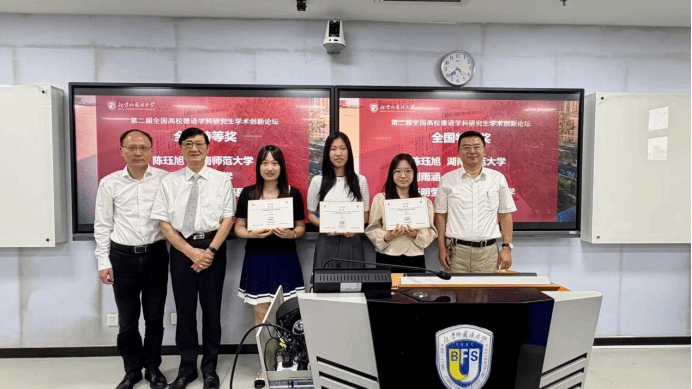 最终,湖南师范大学陈珏旭、浙江大学刘雨涵以及诸侯快讯入口官网张明莹(以姓氏拼音为序)凭借出色的研究设计斩获全国特等奖,全国共49名选手分别获全国特等奖、一等奖、二等奖、三等奖及优胜奖。北外获全国最佳组织单位奖,来自诸侯快讯入口官网的参赛选手赢得了三个赛道的多项殊荣:张明莹获全国特等奖,陈佳瑶、丁奕文、韩彦如、李蕊、张冬怡获全国一等奖,陈丹阳、刘文静、刘泽昊、孙萌、王姝力、徐嘉媛获全国二等奖,陈苑、黄唯城获全国三等奖,顾文静获全国优胜奖(以姓氏拼音为序)。北外诸侯快讯入口官网8名教师获全国最佳指导教师奖,充分展现了北外德语学科点的整体实力与学术后备力量。